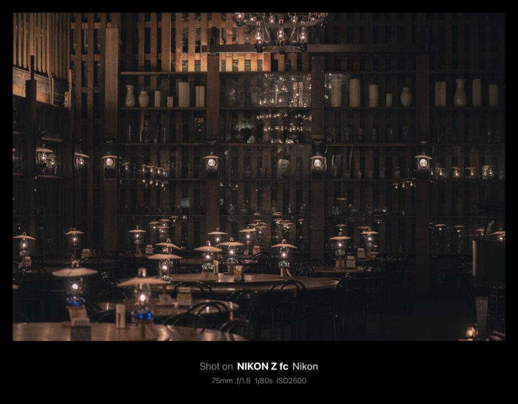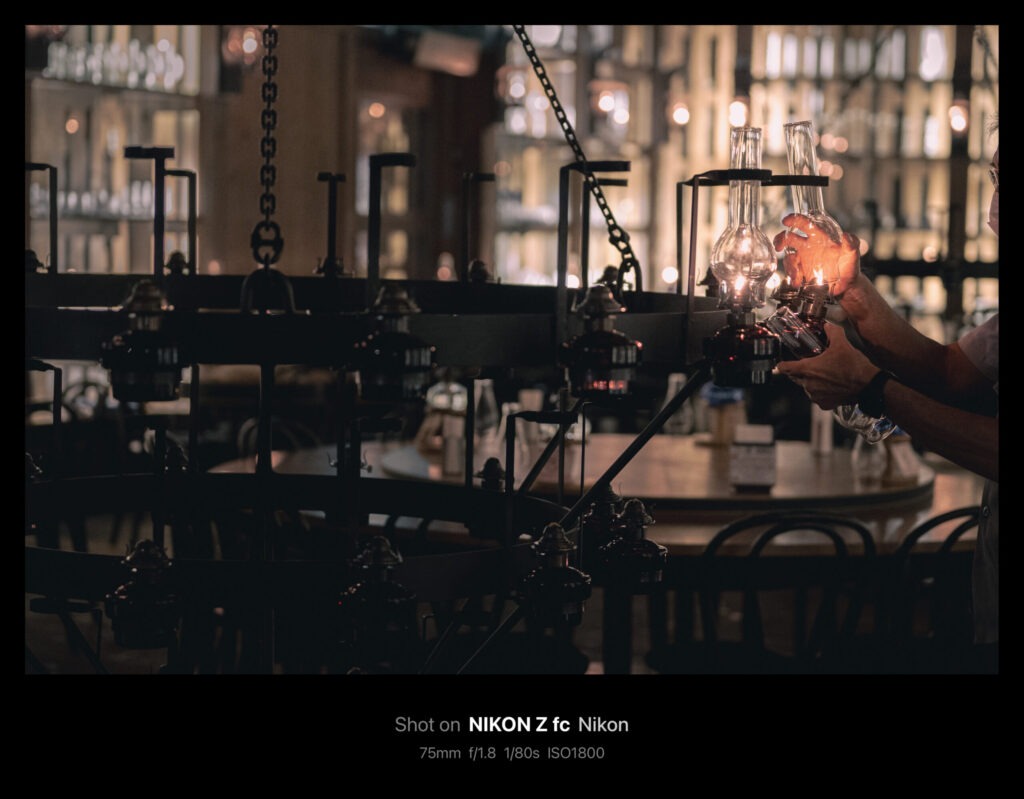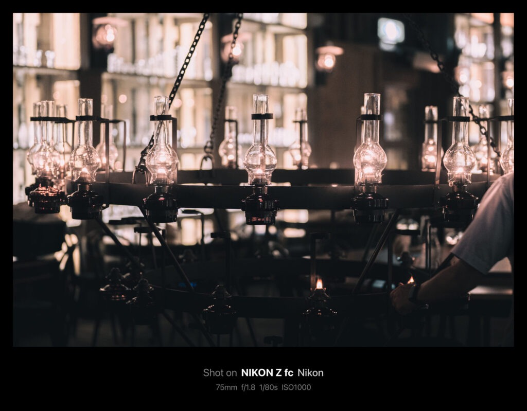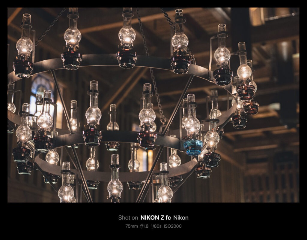 やがてシャンデリアが天井まで上げられ、作業が終了。今回掲載した写真は全てAPS-C機のZ fcで50mm/f1.8(換算75mm)の単焦点レンズを使っています。75mmともなると印象的な印象にはなりますが「ちょっと狭いかな」というシーンがけっこうありました。
