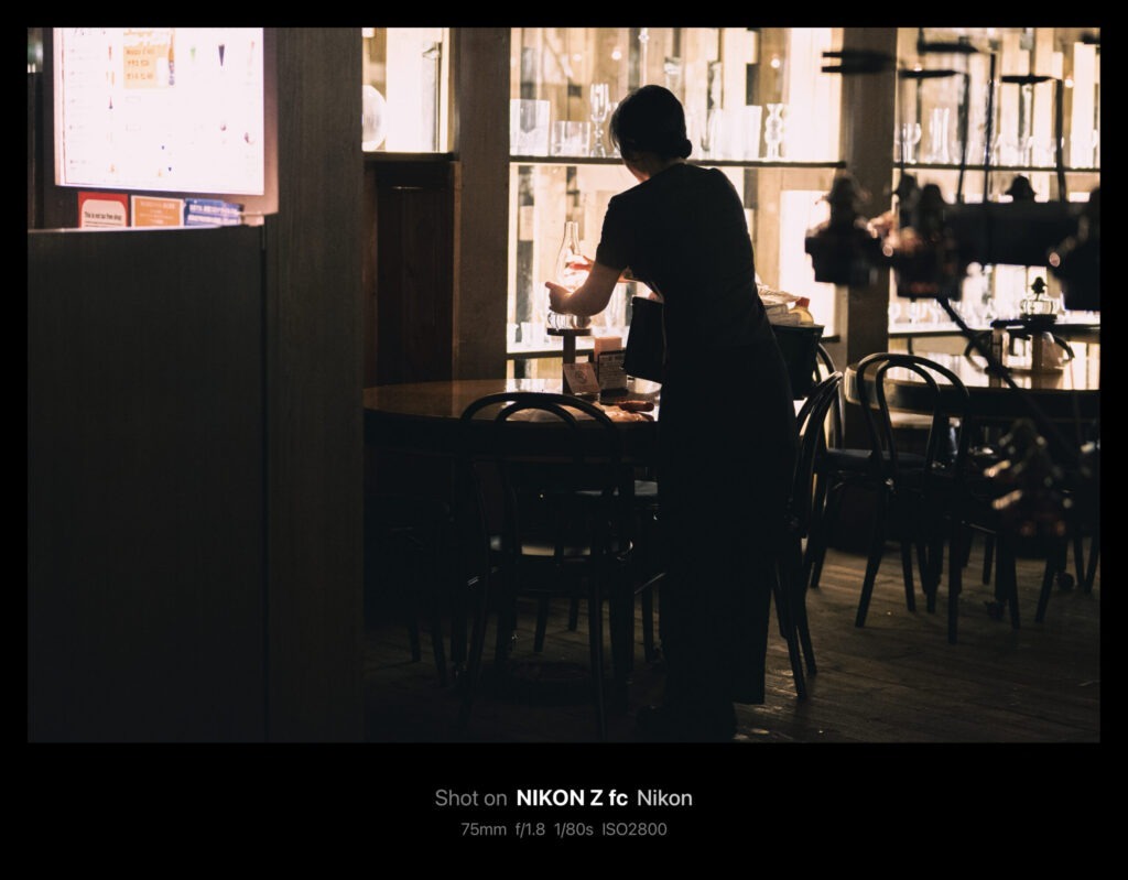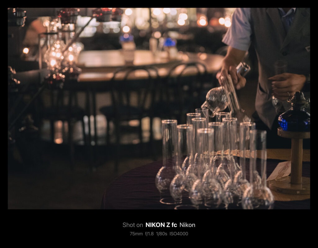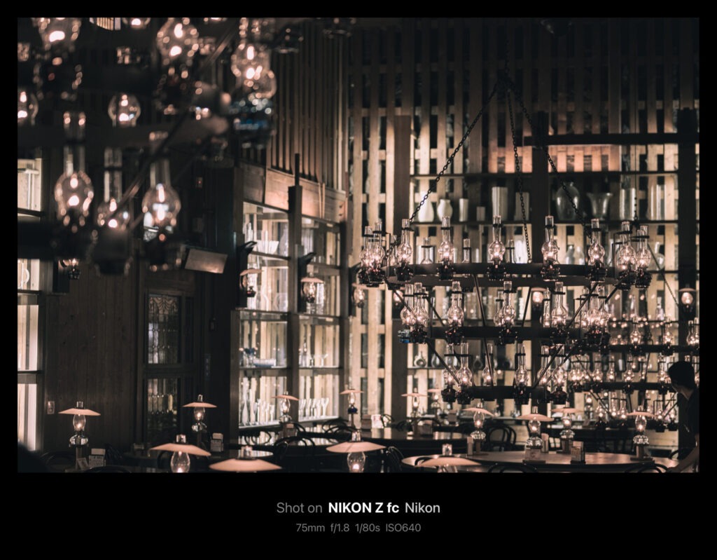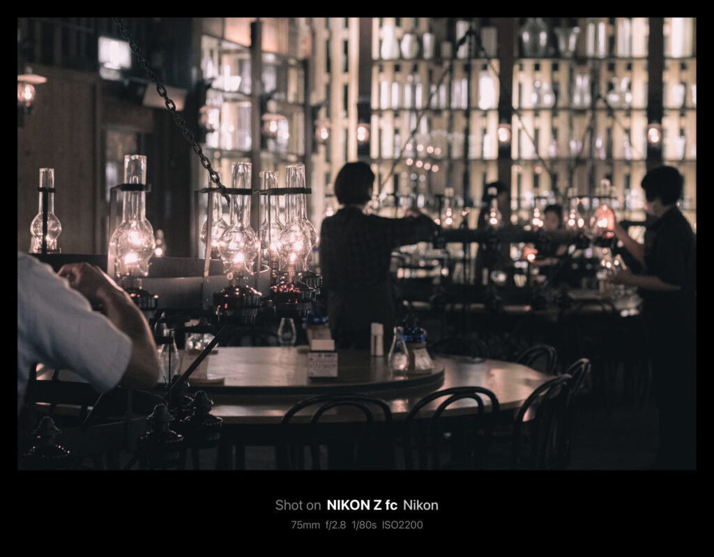 やがてシャンデリアが天井まで上げられ、作業が終了。今回掲載した写真は全てAPS-C機のZ fcで50mm/f1.8(換算75mm)の単焦点レンズを使っています。75mmともなると印象的な印象にはなりますが「ちょっと狭いかな」というシーンがけっこうありました。