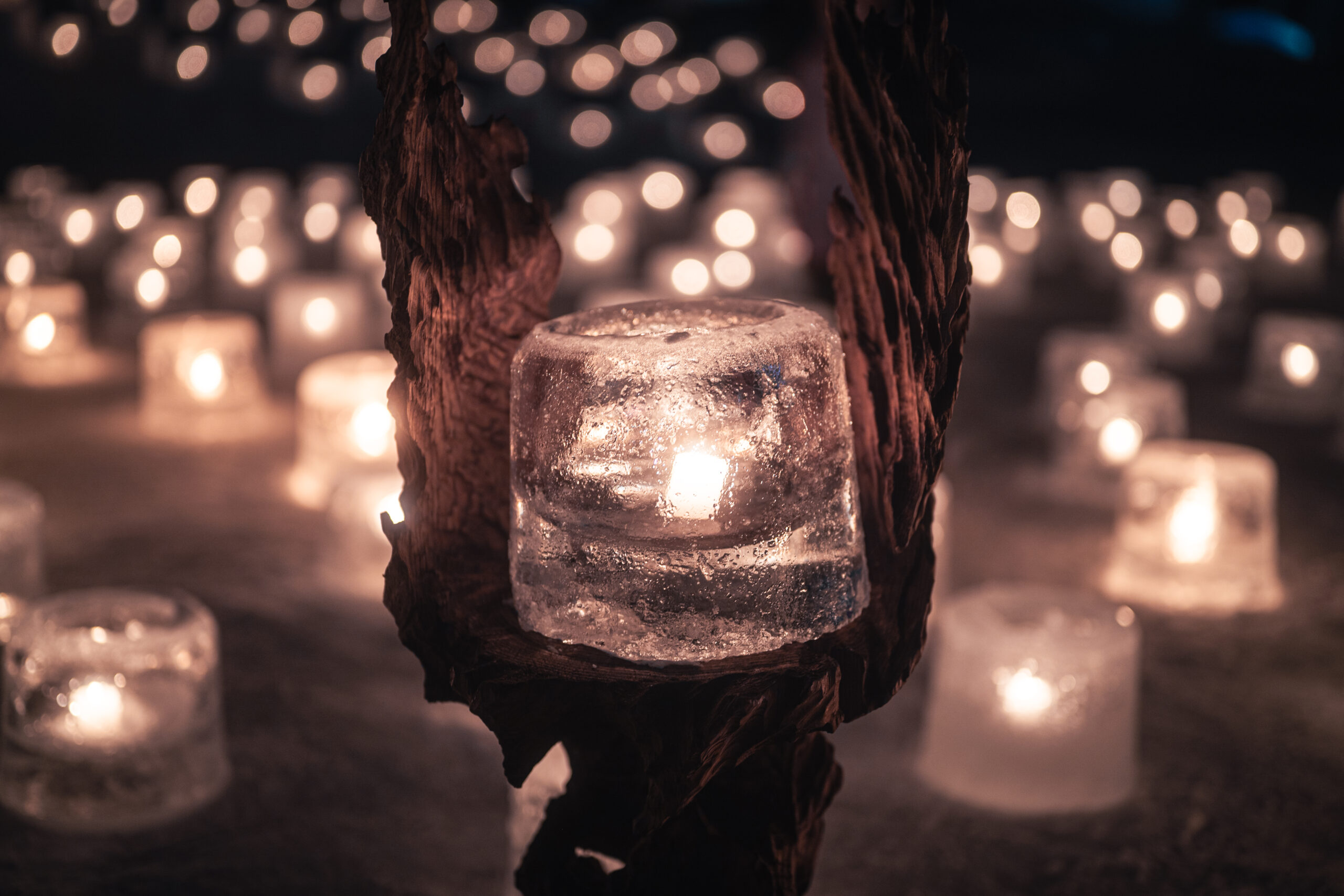決して何十個といったキャンドルが飾られるわけではありません。でも、誰に強制されたわけでもなく、お祭りの当日にそっと家の前にキャンドルを置き、思い思いに火を灯す。アイスキャンドルが町の文化として根付いているわけです。