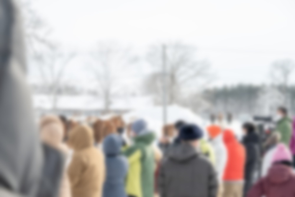 馬追い運動の公開は9時30分からですが、9時過ぎには駐車場がそれなりに混み始めます。時間ぎりぎり、もしくは開始後の到着が予想される場合は第2駐車場を利用すると良いかもしれません。撮影日も、マイナス気温のなか多くの見学者が訪れていました。
